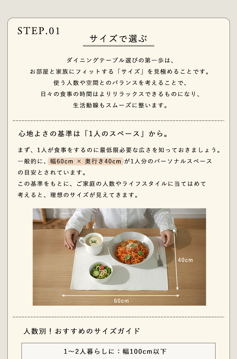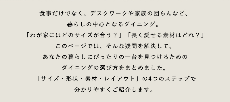 これからの心地よい日々を支える、 あなたにぴったりのダイニングを 一緒に見つけてみませんか?