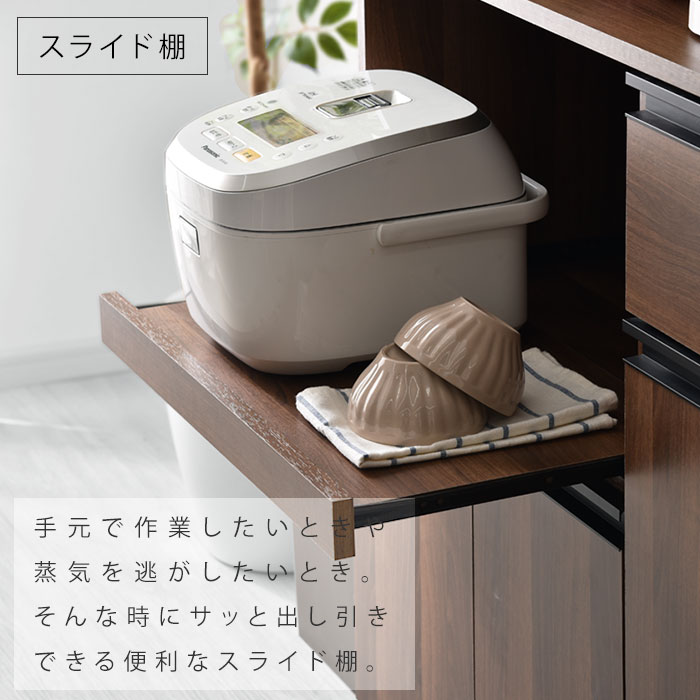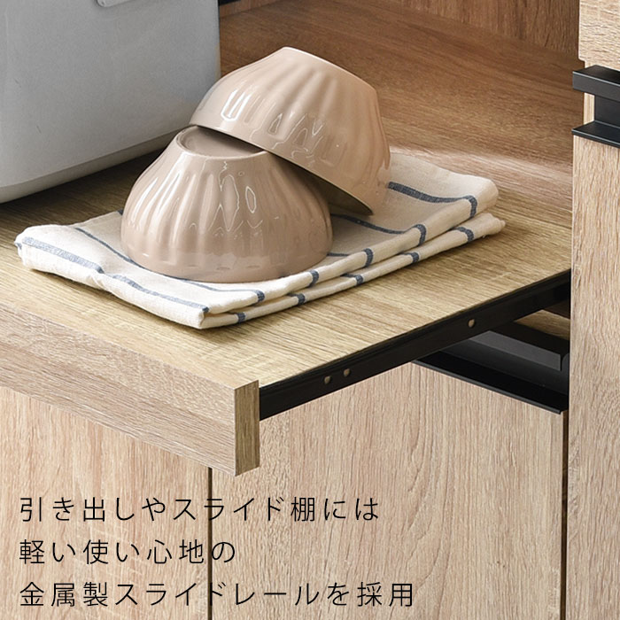 食器棚・スライド棚付きキッチンレンジ台 ラプレ ワイド