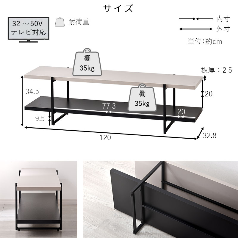 | 商品サイズ | (約)幅120cm×奥行き32.8cm×高さ34.5cm |