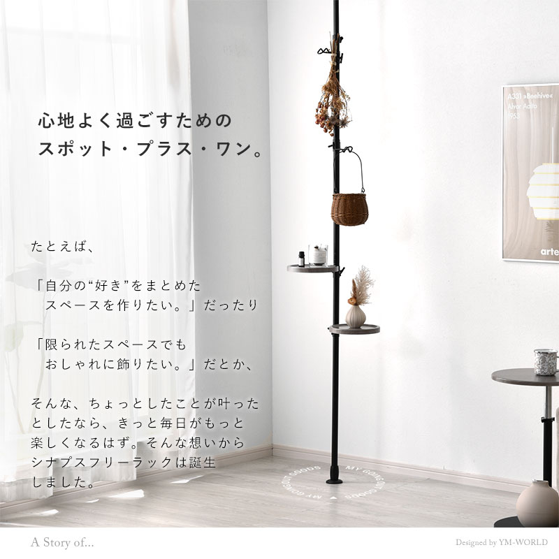 突っ張り フリーラック トレー&フック付き シナプス
