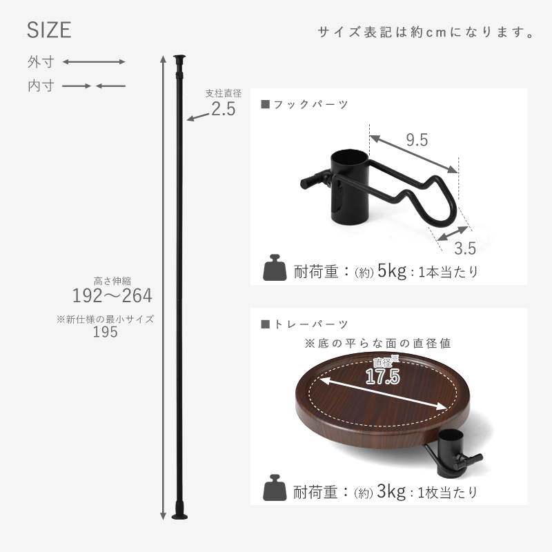 | 商品サイズ | (約)幅21cm×奥行き27cm×高さ192~264cm |