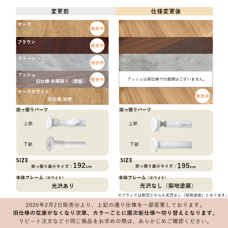 | 取扱タイプ | ブラウン、オーク、ストーン、アッシュ、オークホワイト(白) |