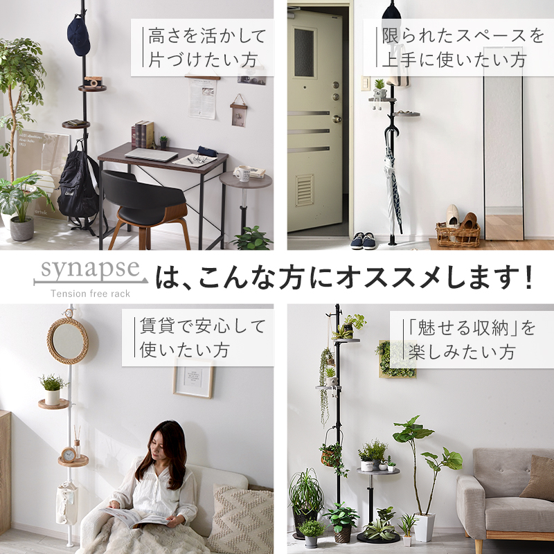 突っ張りラック つっぱり棒 突っ張り棚 スリム 天井 シナプスラック 壁 壁面 壁面収納 高さ調整 トレー フック