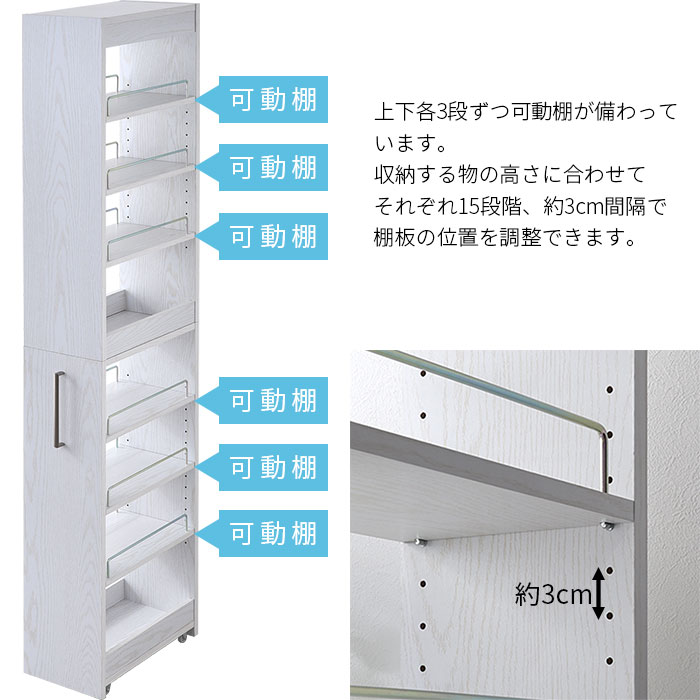 キャスター付きスリム収納 幅25cmタイプ イルザ