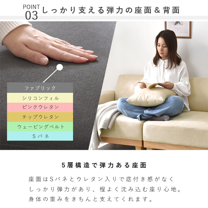 | 商品仕様 | 脚/幕板:天然木(ラバーウッド)(ラッカー塗装) 張り材:ポリエステル クッション材:Sバネ、ウェービングベルト、ウレタン、ポリエステル綿、不織布 |