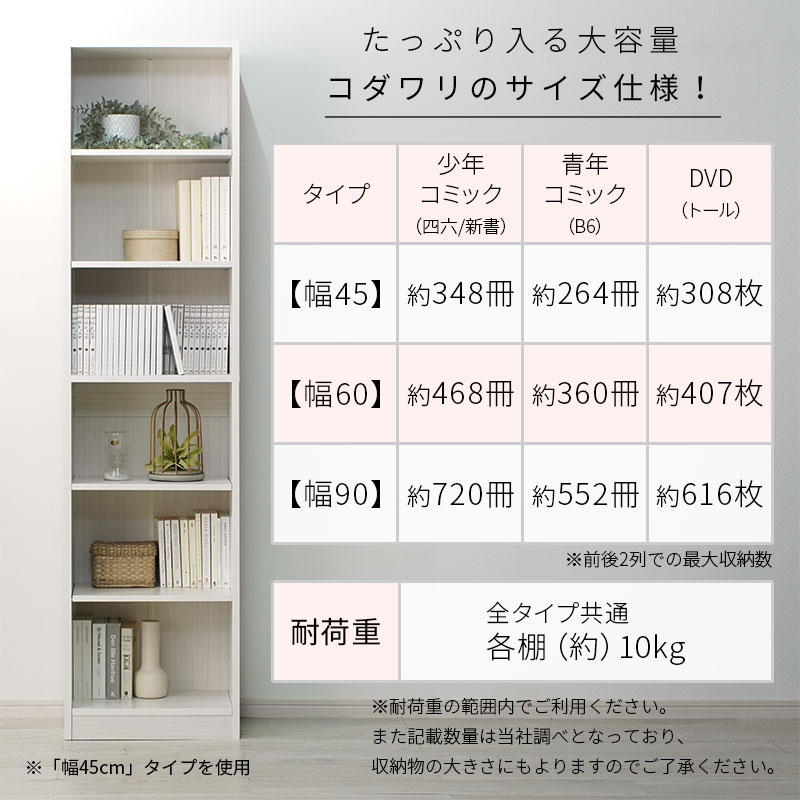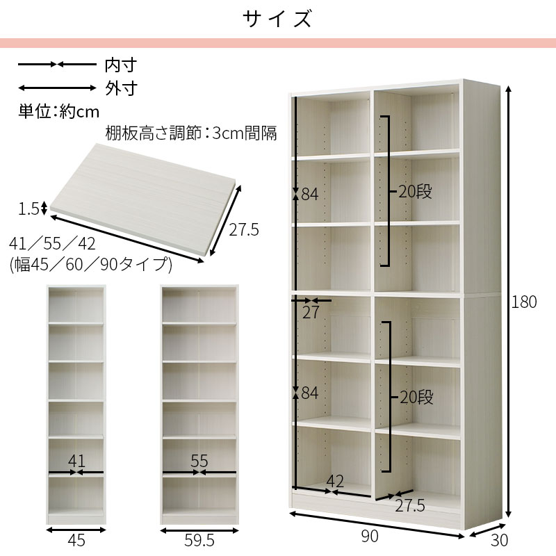 | 商品サイズ | 【幅45】(約)幅45cm×奥行き29.5cm×高さ180cm 【幅60】(約)幅59.5cm×奥行き29.5cm×高さ180cm 【幅90】(約)幅90cm×奥行き29.5cm×高さ180cm |