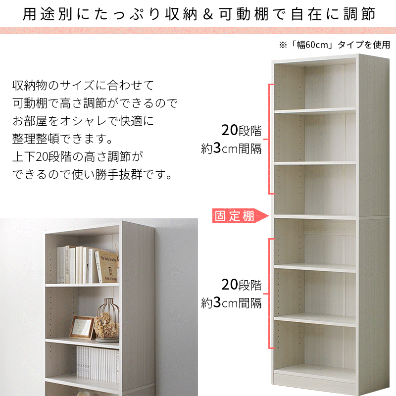 | 高さを生かして、本も雑貨もすっきり部屋になじむシンプルデザイン本棚。 奥行たっぷり本もA4書類もすっきり収納。 幅違いを含む本棚を複数組み合わせることで、収納量を増やしながら、統一感のある壁面収納がつくれます。 厚みのある板を使用した丈夫で安定感のある造り。 各板には水や汚れ、キズに強いメラミン化粧板を採用。 サッと拭き取れば汚れないのでキッチン周りでも大活躍します。 | |
