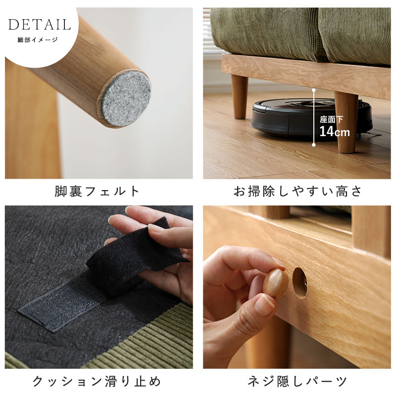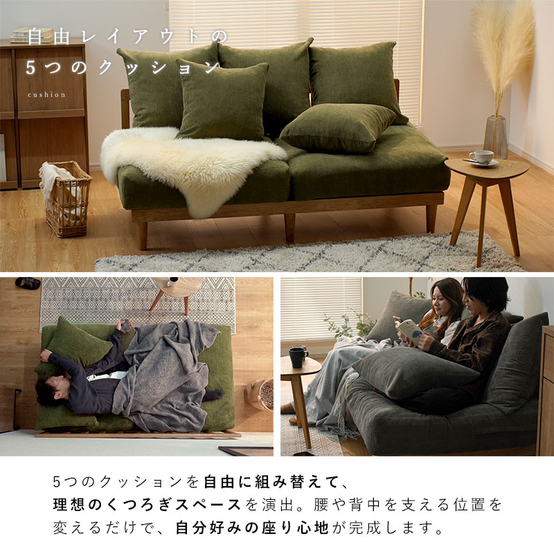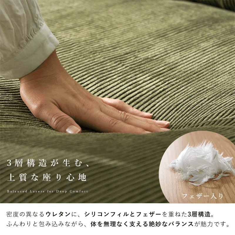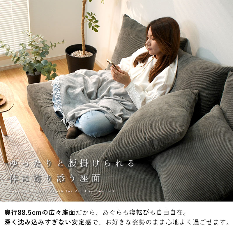 | 商品名 | コーデュロイ 天然木 2.5人掛け ワイドソファ ハグ |