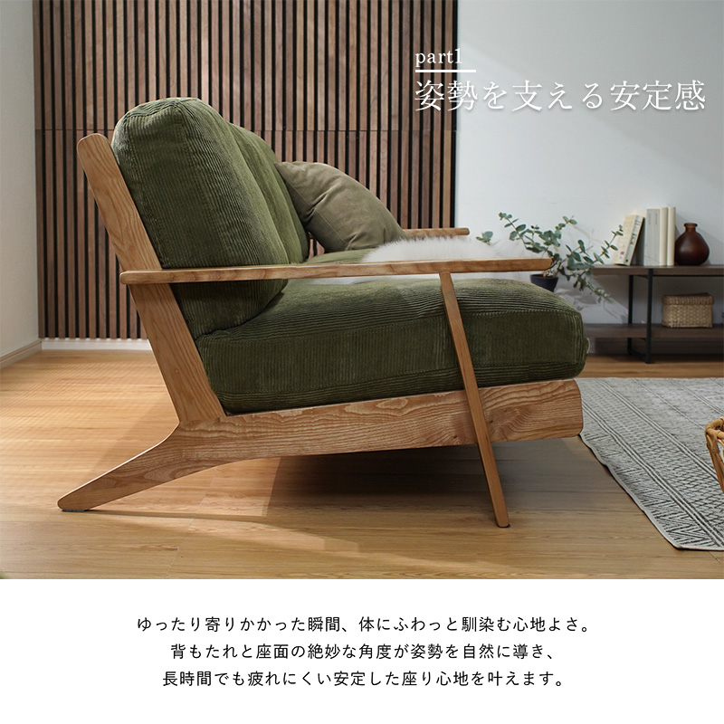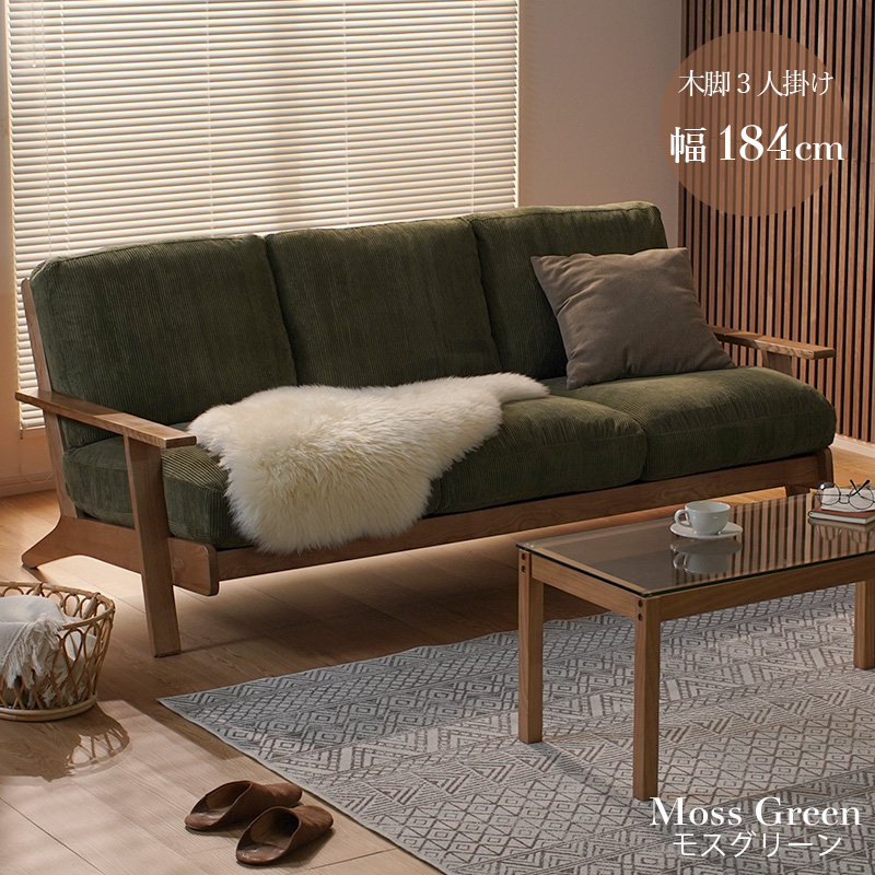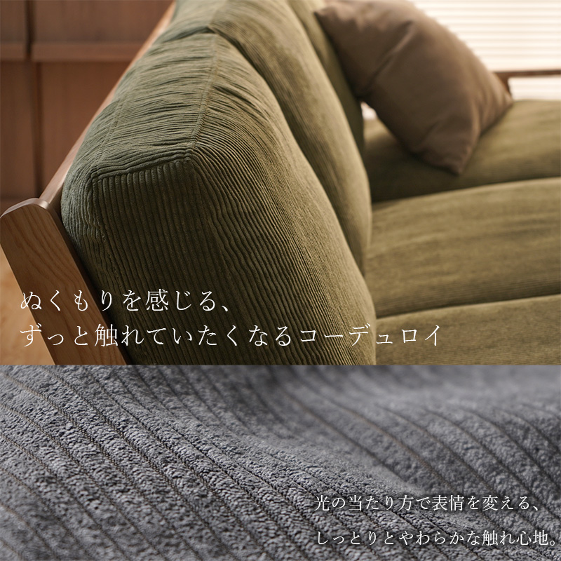 コーデュロイ 天然木 3人掛け ソファ ネボ