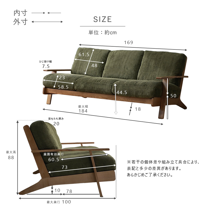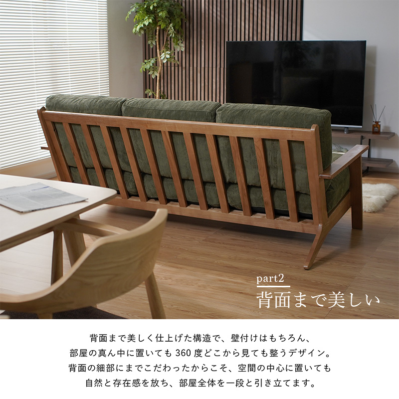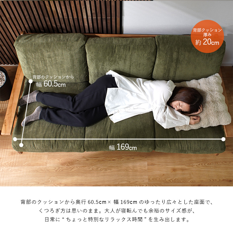 | 商品名 | コーデュロイ 天然木 3人掛け ソファ ネボ |