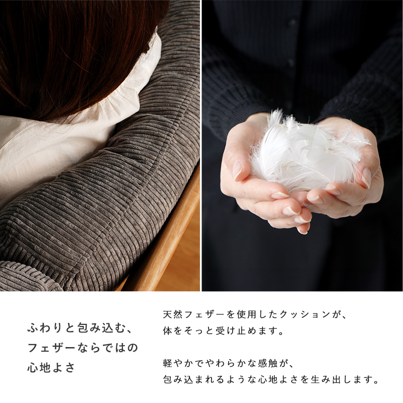 | 商品仕様 | 木部:天然木(アッシュ)[ラッカー塗装] 張り材:ポリエステル クッション材:ウレタン、シリコンフィル、フェザー |
