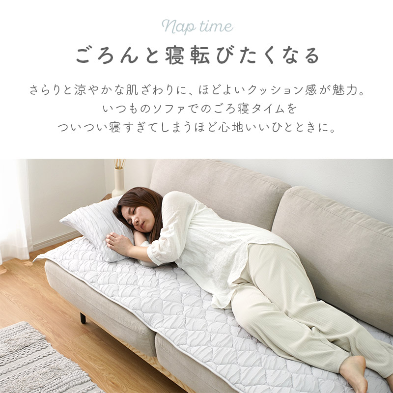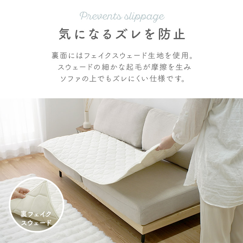 ソファパッド ソファカバー 3人掛け 2人掛け 65×180cm 長方形 くしゅくしゅ キルティング レーヨン さらさら 北欧 かわいい 抗菌 防臭 春 夏 秋 シンプル ナチュラル 韓国 おしゃれ 白 ホワイト グレー ベージュ ソファー 敷きパッド カバー 洗える 滑り止め 新生活