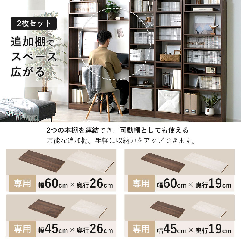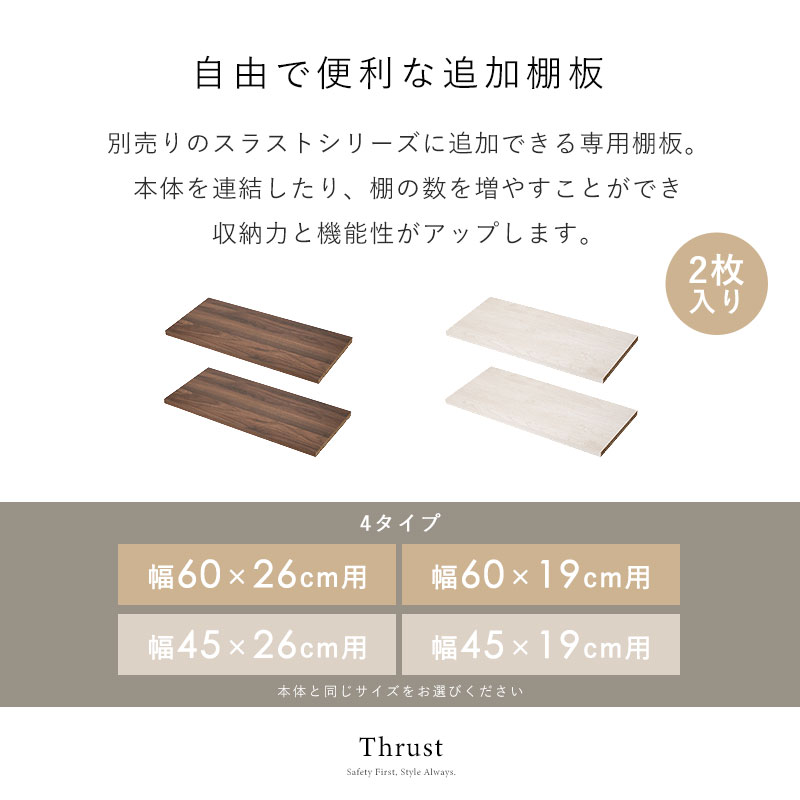 天井つっぱり本棚 オシャレなラック スラスト 幅60cm 幅45cm 奥行26cm 奥行19cm 専用 棚板2枚セット 天井つっぱり書棚 追加棚板 60cm 45cm 26cm19cm 専用棚板 橋渡し棚板 ジョイント棚板 耐震 本棚 オシャレ 壁面収納 つっぱり 大容量 木製 収納 ラック ディスプレイラック