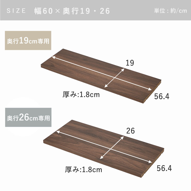 | 取扱タイプ | 幅45cm×奥行19cm/ココアブラウン、幅45cm×奥行26cm/ココアブラウン、幅60cm×奥行19cm/ココアブラウン、幅60cm×奥行26cm/ココアブラウン、幅45cm×奥行19cm/ホワイトオーク(白)、幅45cm×奥行26cm/ホワイトオーク(白)、幅60cm×奥行19cm/ホワイトオーク(白)、幅60cm×奥行26cm/ホワイトオーク(白) |