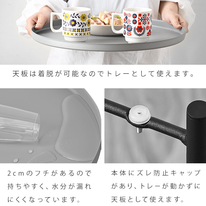 | 極限までシンプルなデザインの、天板がトレーになる真円のサイドテーブル。 くつろぎの傍らで最高の相棒となります。 高さが52cmとソファの近くで使うとちょうどよいサイズ。ソファサイドテーブルとして活躍できます。 またちょっとしたミニテーブルにも。水分にも強いため、デスクサイドテーブル、花台やプランツスタンドにも使えます。 天板は取り外ししてトレイとして使えるトレイテーブルです。水分が倒れてもこぼれない2cmのフチがついています。 | |