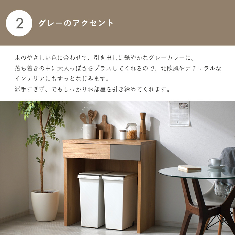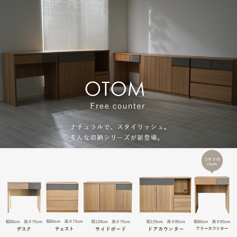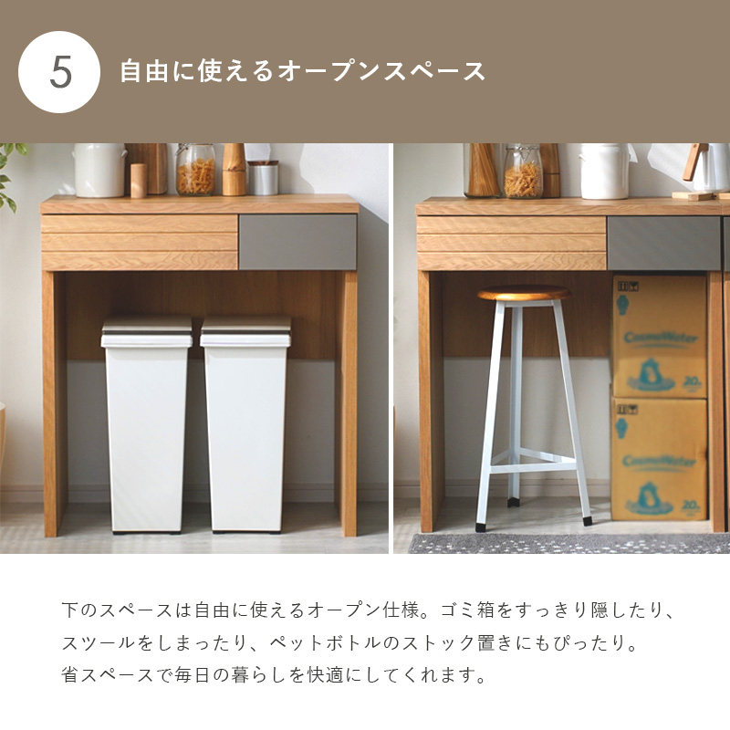 日本製 国産家具 フリーカウンター カウンター 幅80cm 高さ85cm 引き出し 収納棚 ラック 間仕切り 台所 ナチュラル 北欧 モダン 木目 作業台 作業スペース キッチン収納 魅せる収納 隠す収納 省スペース オートム 120フリーカウンター ガルト大川家具