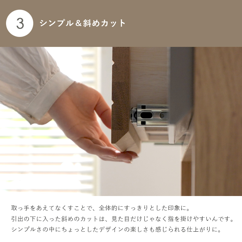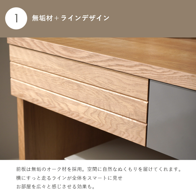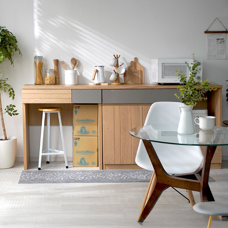 | 商品仕様 | 天板:強化紙化粧繊維板 前板:オーク無垢材(オイル塗装)、MDF(エナメル塗装) 本体:プリント紙化粧繊維板(裏化粧あり) |