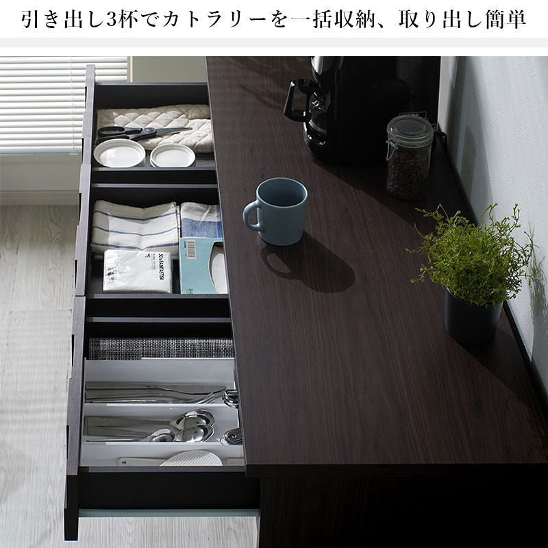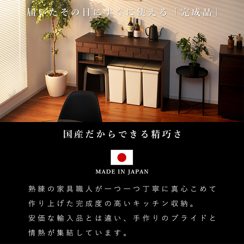 完成品 日本製 キッチンカウンター 食器棚 レンジ台 キッチンラック レンジラック レンジボード キッチン ダストボックス ゴミ箱 収納 国産 組立不要 シンプル おしゃれ 作業台 引き出し モダン 間仕切り 台 背面化粧仕上げ 一人暮らし 120 木製 奥行40 奥行45 デスク 大容量