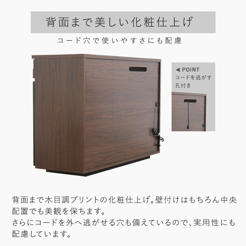 | 商品仕様 | 天板:強化紙 小引出前板:アルダー無垢(オイル塗装) 側板・裏板:プリント ガラス仕様:4mm強化ダークグレーガラス |