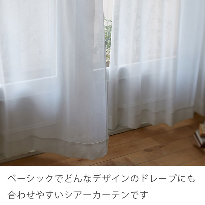 | 高いクオリティを感じられる日本製のシアーカーテン コーディネイトしやすいシンプルなデザインです。 家庭で洗えてミラー効果がありプライバシーを守れます。 カラー(模様)によって異なる特徴が選べるので、お好みをチョイスしてくださいね。 ブロンシェ…ウラメンにブライト意図を編み込みミラー効果を出しオモテ面のがライトを細かく振り縦ストライプを表現しています。 ムース…プライバシーを守るミラーレースに遮熱機能をプラス ロワール…コーディネイトしやすいストライプ柄の遮熱レース。防炎機能もあり安心です。 | |