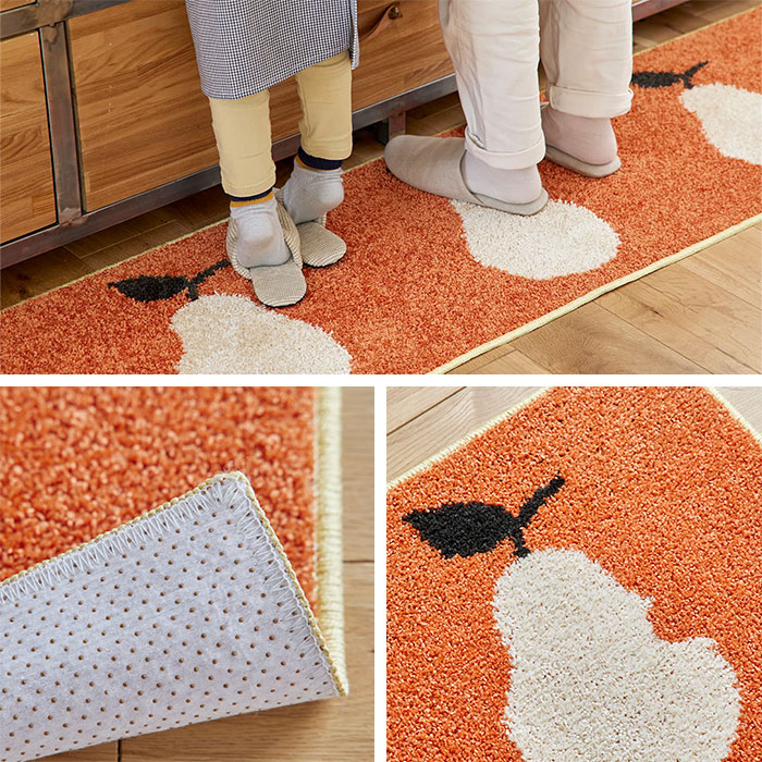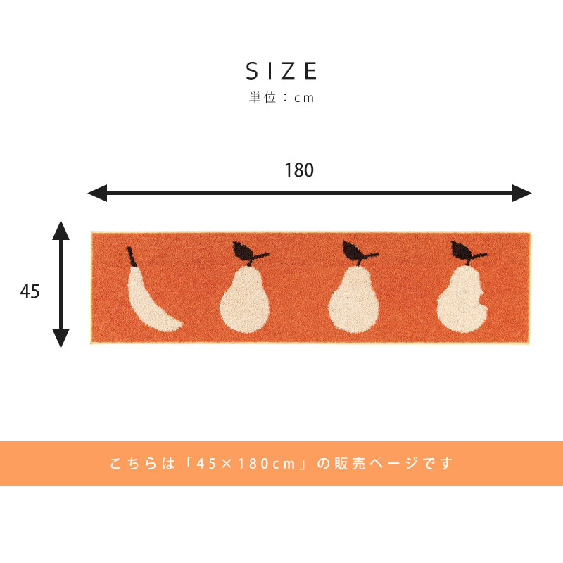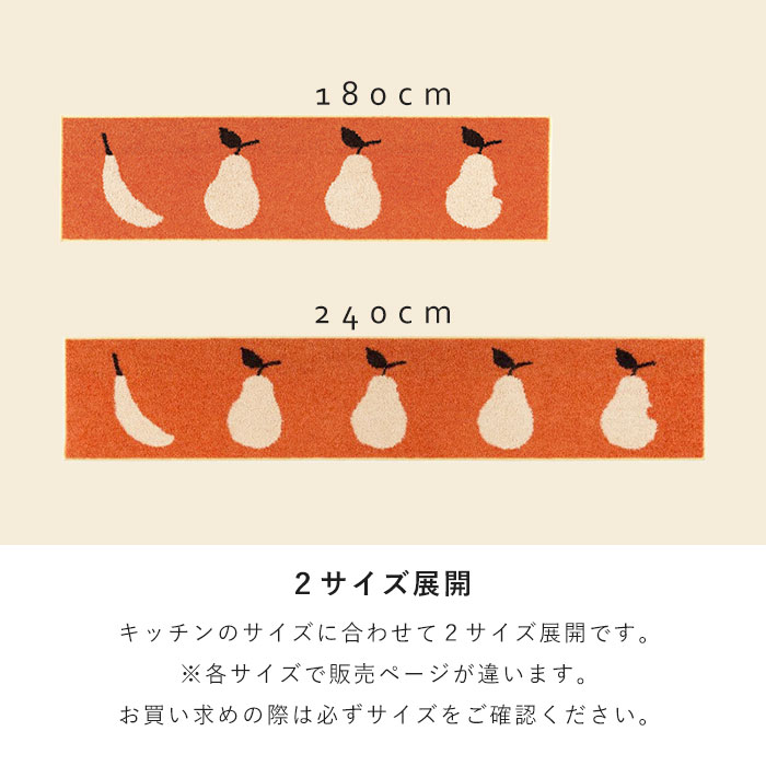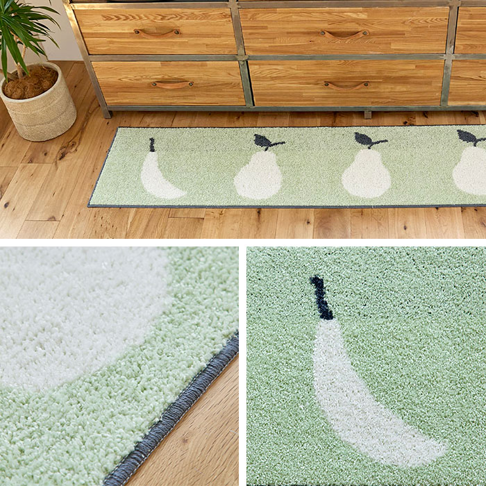 日本製 キッチンマット マット 洗える おしゃれ かわいい 北欧 45 180 滑り止め ウォッシャブル 床暖房対応 ホットカーペット対応 遊び毛防止 果物 洋ナシ バナナ オレンジ グリーン 長方形