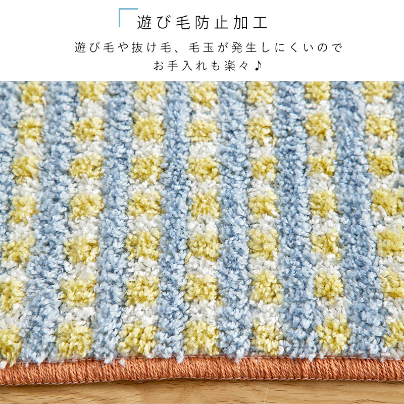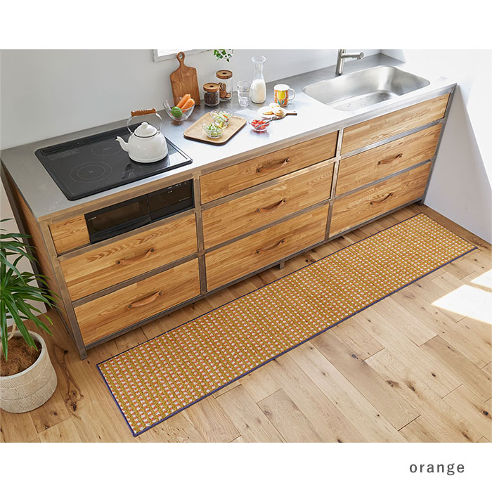 キッチンマット 日本製 マット 洗える おしゃれ かわいい 北欧 オールシーズン 45 240 滑り止め ウォッシャブル 床暖房対応 ホットカーペット対応 遊び毛防止 チェック レトロ オレンジ ブルー 長方形