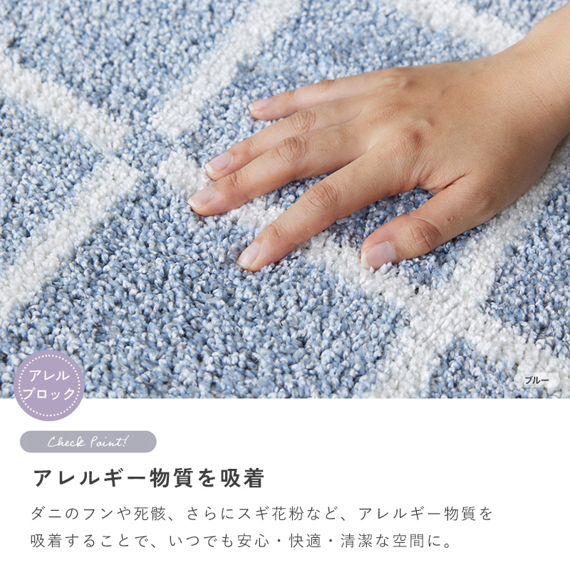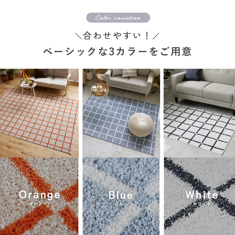 | オセロは、日本製ならではの高品質と、暮らしを豊かにする機能性を兼ね備えたラグです。 清潔さと安心感を重視し、ホルムアルデヒドの放散量が最も少ない等級「F☆☆☆☆」を取得。 小さなお子様がいるご家庭でも安心してお使いいただけます。 さらに防ダニ加工に加え、アレルブロック機能を搭載。ダニのフンや死骸、スギ花粉などのアレルギー物質を吸着し、快適で清潔な空間を保ちます。 日々のお手入れも簡単。遊び毛がほとんど出ないため掃除がラクで、ご家庭の洗濯機で丸洗いも可能。裏面は滑り止め付きで、ずれにくく安全です。 素材は通気性がよく乾きやすいポリエステル100%。夏はムレにくく、冬は熱を逃がしにくいため、年中快適にご使用いただけます。さらに、ホットカーペットや床暖房にも対応する耐熱加工も施されています。 デザイン面では、「Othello(オセロ)」という名の通り、シンプルな格子柄のデザイン で、お部屋に洗練されたアクセントを加えてくれます。 カラーは、お部屋のイメージに合わせて選べるオレンジ、ブルー、ホワイトなどのベーシックカラーをご用意。 ふかふかの手触り と、飽きのこないシンプルな柄 で、毎日のくつろぎ時間をグレードアップしませんか? | |