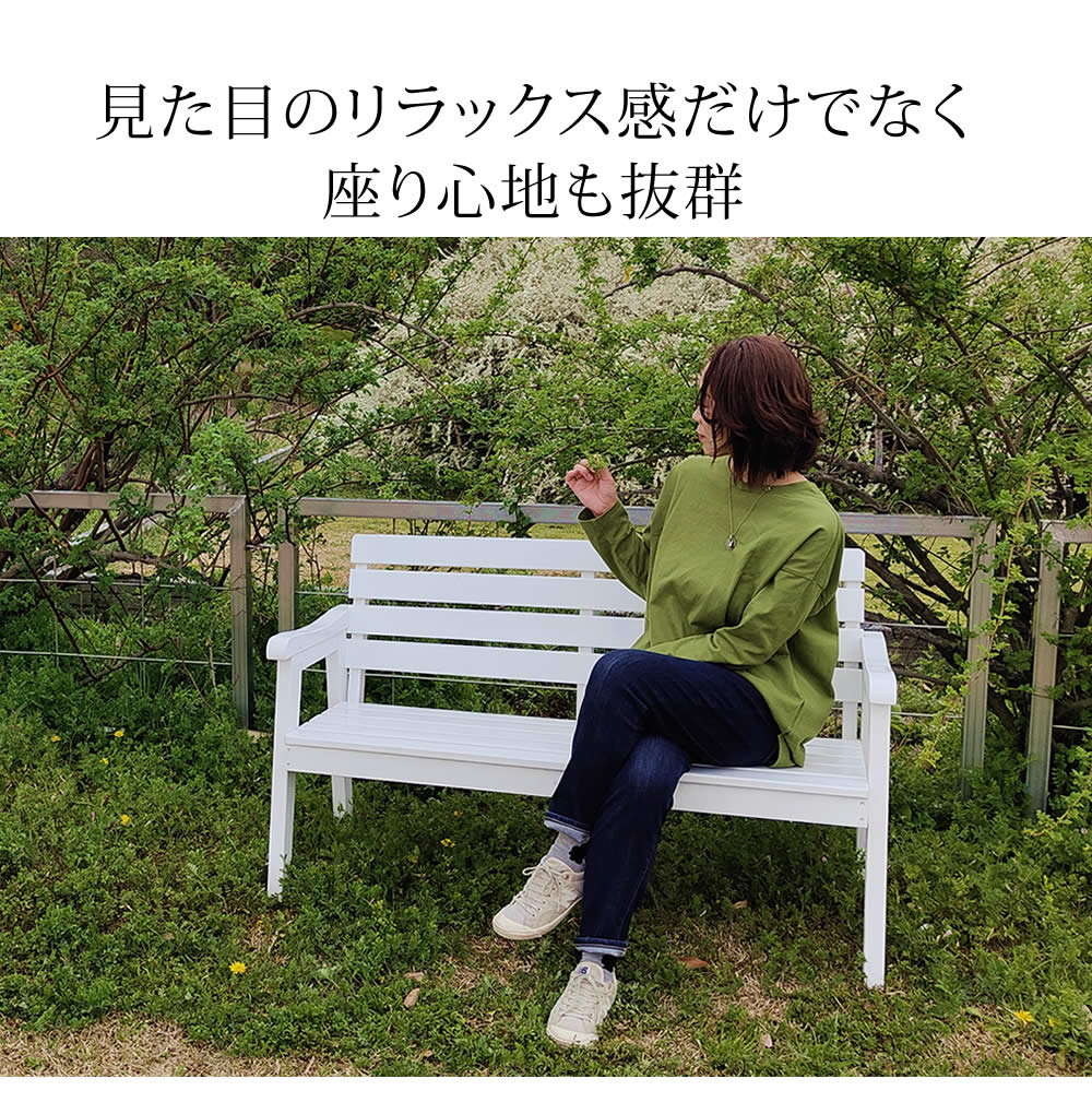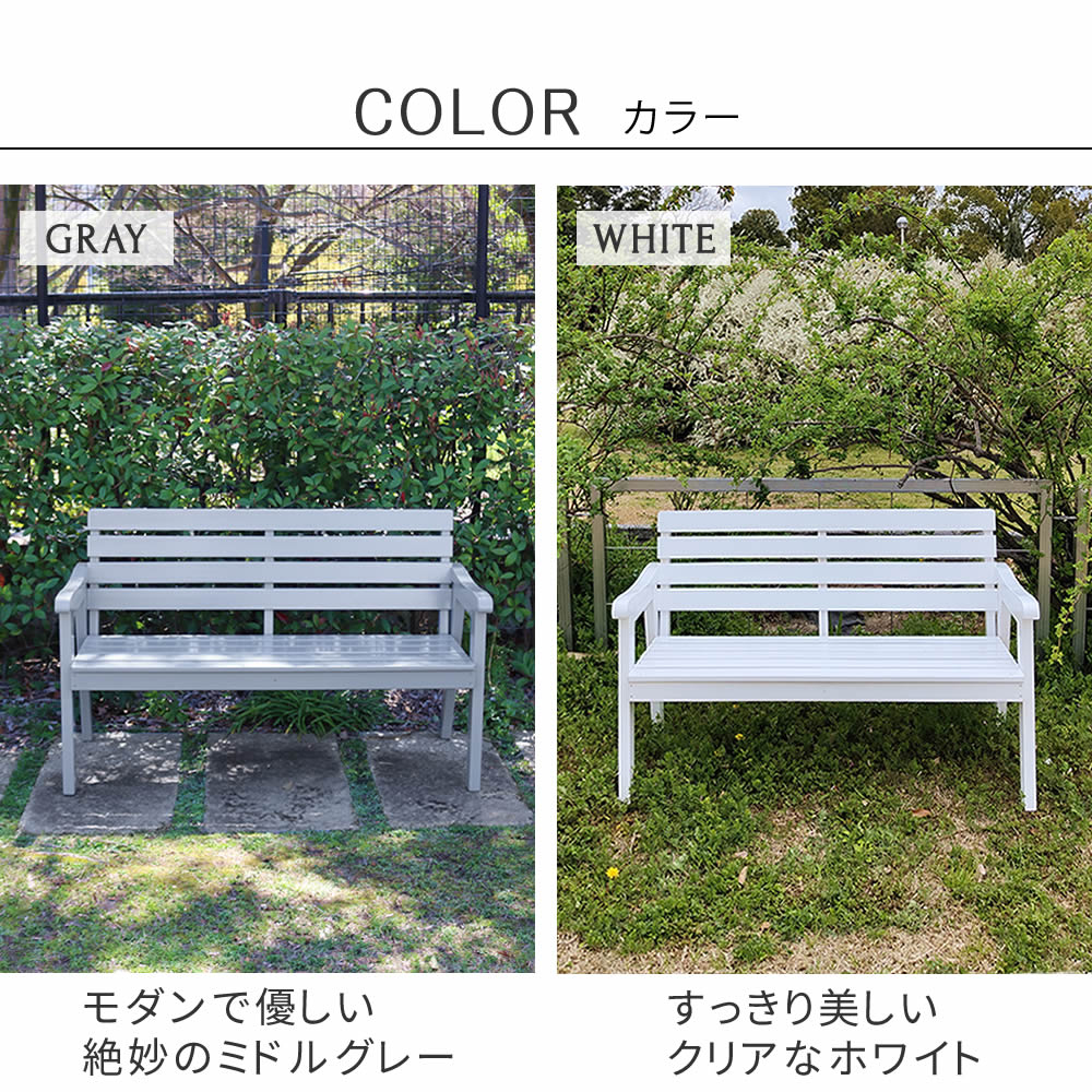 ベンチ 木製 チェア ガーデンベンチ ウッドベンチ 屋外 幅130cm モダン 2人掛け ガーデン おしゃれ かわいい 椅子 庭 ベランダ ホワイト グレー 長方形 天然木 ベンチチェア 長椅子 カントリー エクステリア 園芸 背もたれ付き ひじ掛け パークベンチ ガーデンチェア