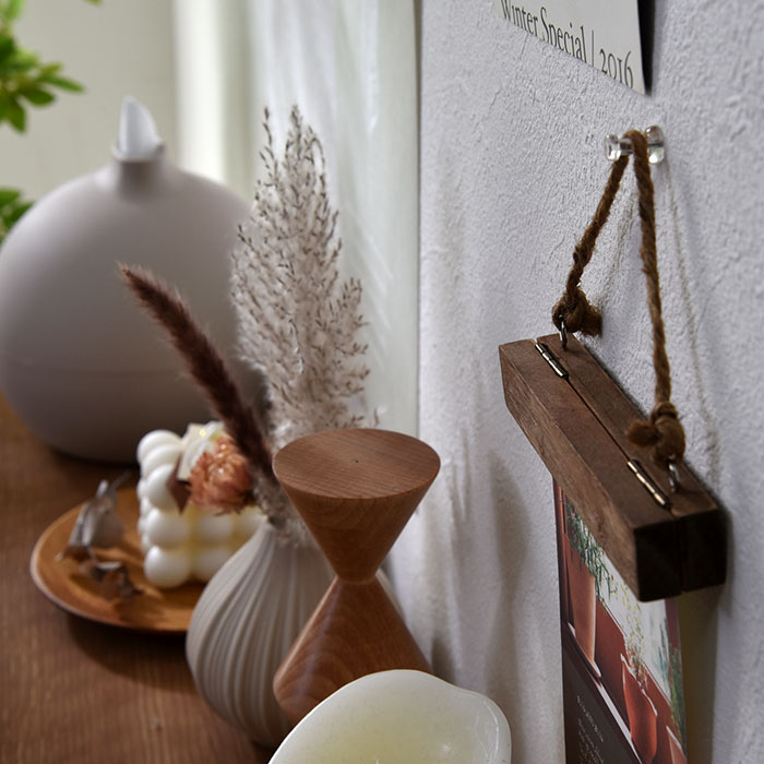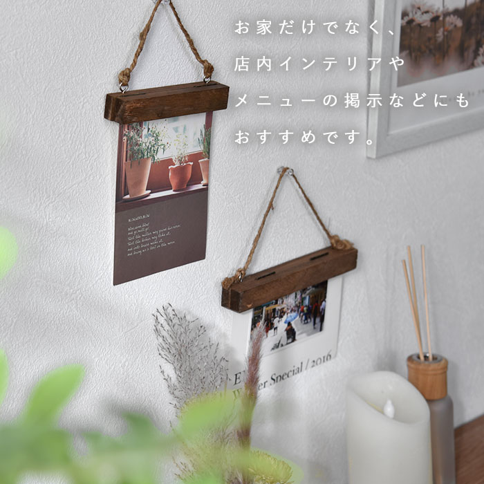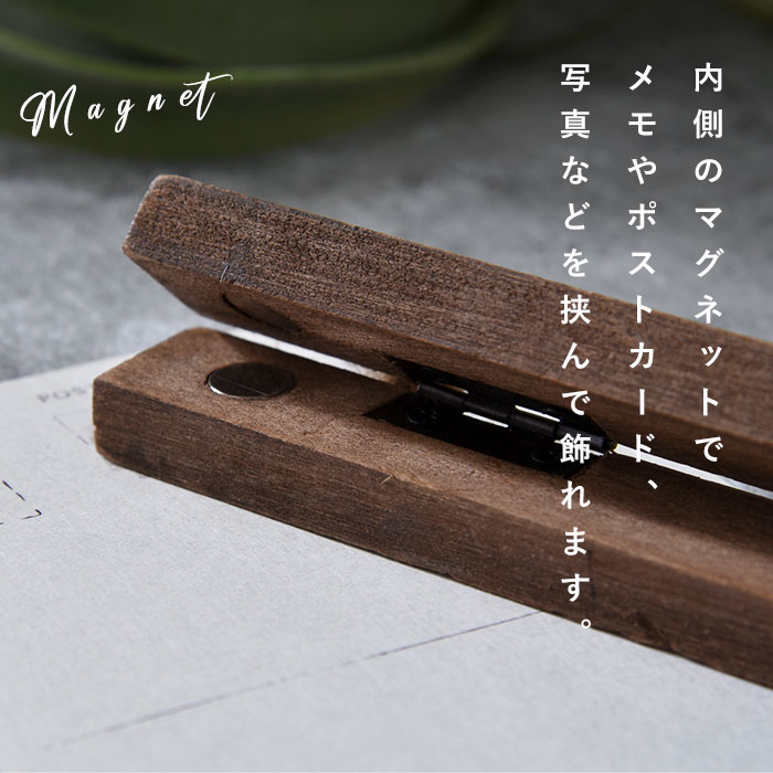 | 写真やメモをはさんでディスプレイできる HANGING CLIP アイディア次第で色々な使い方ができます。 一気に雰囲気が出ておしゃれ度がアップするおすすめアイテムです。 お気に入りの写真がインテリアに。 お家だけでなく、店内インテリアやメニューの掲示などにもおすすめです。 シンプルだけど高級感のあるデザイン アンティークの風合いが魅力的で雰囲気のある麻×パインウッド。 内側のマグネットでメモやポストカード、写真などを挟んで飾れます。 金具はアンティークゴールドでヴィンテージな雰囲気に。 キッチン・玄関・トイレ・子供部屋などあなたのアイディアで使い方が広がる。 | |