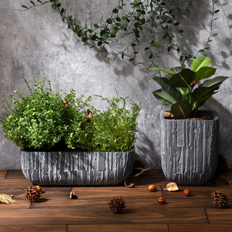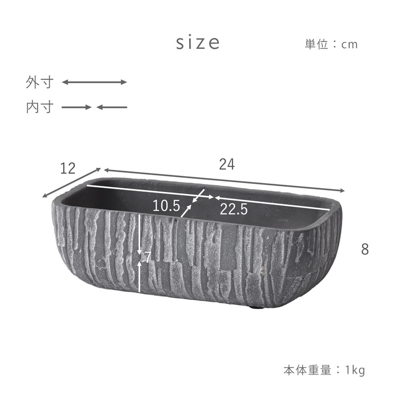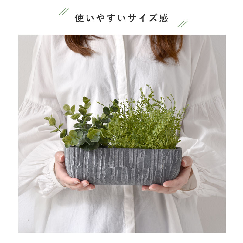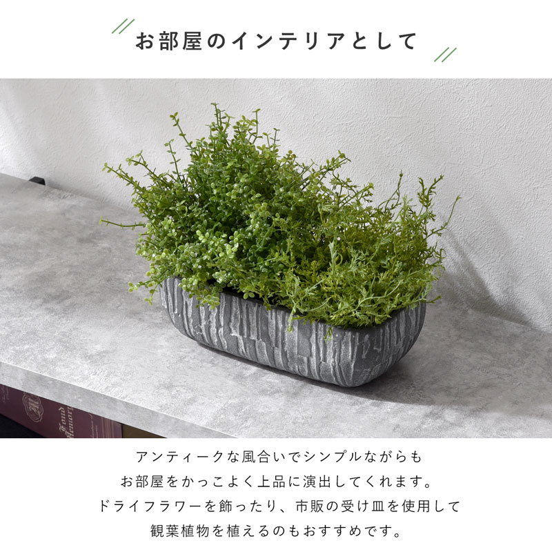 植木鉢 おしゃれ アンティーク セメント 北欧 プランター 鉢 ポット ガーデニング ガーデン 観葉植物 室内 屋外 園芸 多肉 植物 ドライフラワー 玄関 鉢植え 庭 かわいい シンプル フラワーポット グリーンポット グリーン ブラック インテリア Lサイズ 黒 横長 長方形