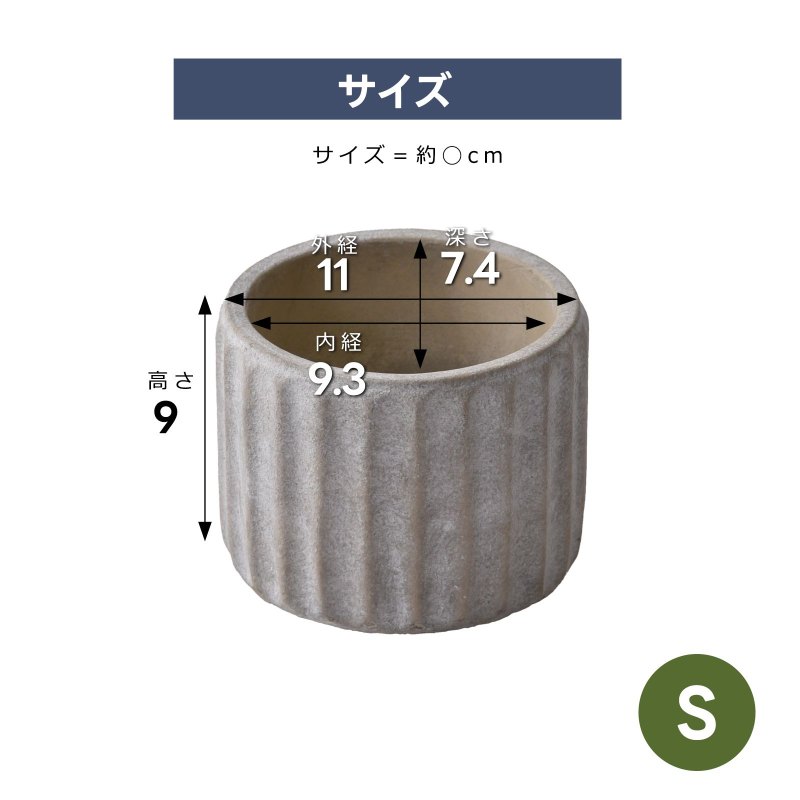 | 土を耕したような模様のセメントポットです。 ナチュラルカラーで、どんな植物を植えてもマッチします。 シンプルながら、お部屋を癒やしの空間にしてくれます。 サボテンや多肉植物、観葉植物、花の苗など、どんな種類の植物にもピッタリ合います。 もちろん造花でもお手入れ無しで気軽に使えます。 | |