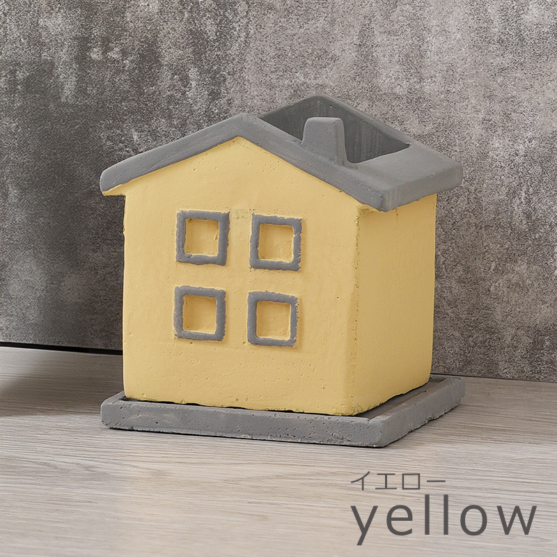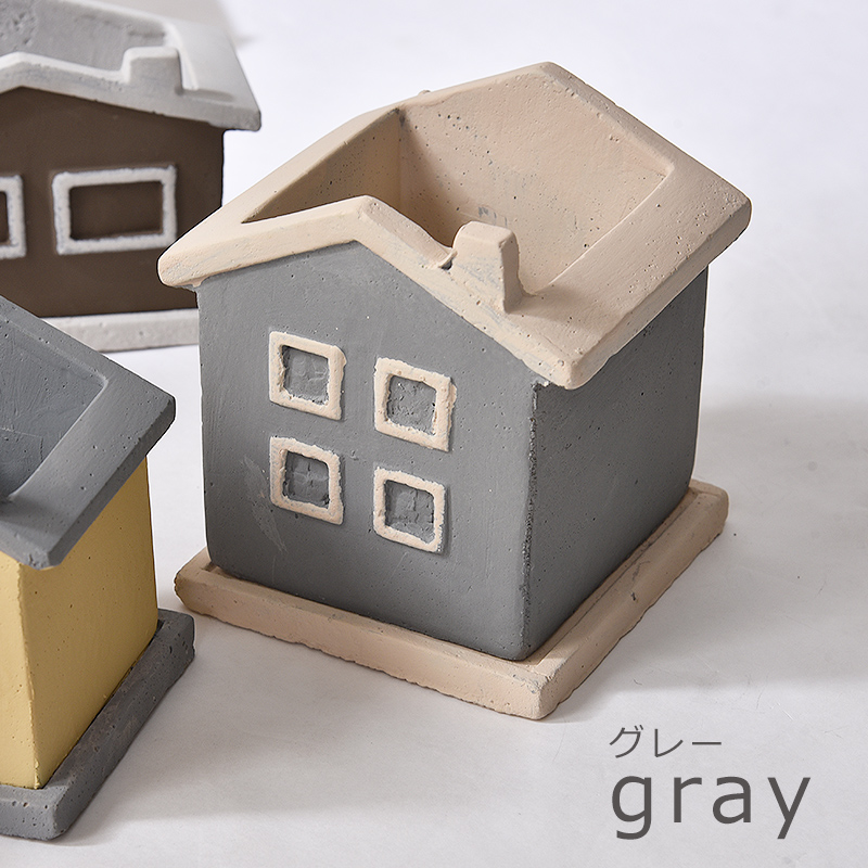 植木鉢 グリーンポット フラワーポット 家型 四角 スクエア おしゃれ シンプル 北欧 アンティーク風 スクエアポット 受け皿 底穴 フラワースタンド 小さめ 小さい かわいい 室内 室外 プランター ハウス 鉢カバー ガーデニング コンクリート モルタル 観葉植物 多肉植物