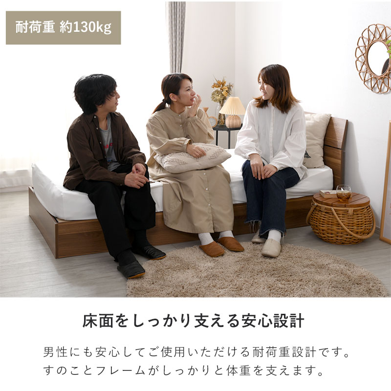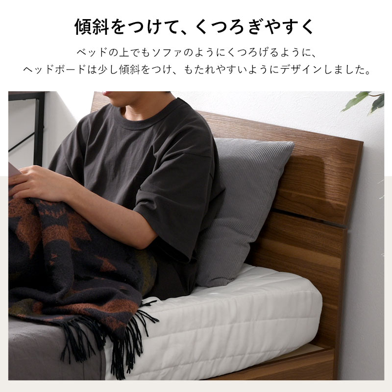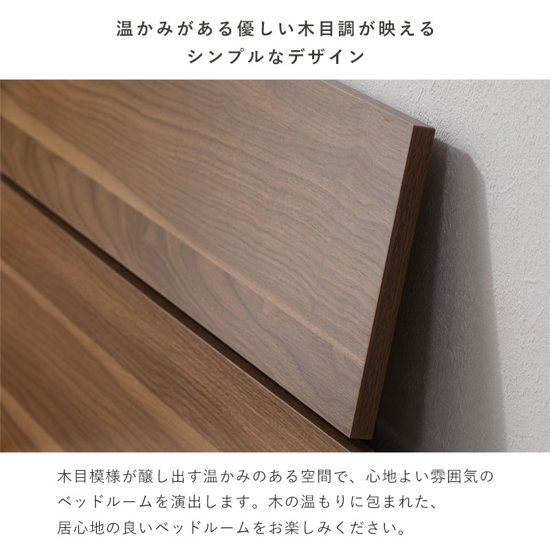 | 眠りの質を変えるベッドフレーム 美しい木目のシンプルなベッドフレーム お部屋をすっきりと見せ、居心地の良い寝室に。 木目調デザインのロースタイルベッドで、お部屋をすっきり広々と見せます。高さを抑えることで圧迫感を軽減し、限られたスペースでも広く感じられる美しい空間を実現します。 温かみがある優しい木目調が映えるシンプルなデザイン 木目模様が醸し出す温かみのある空間で、心地よい雰囲気のベッドルームを演出します。木の温もりに包まれた、居心地の良いベッドルームをお楽しみください。 寝室は自分だけの空間だから好きを貫きたい。心地よい眠りへと誘うこのベッドフレームで、寝室をもっと自分らしく。 オールシーズンに快適なすのこベッド 梅雨のじめじめや寝汗で湿気の溜まりがちな寝床内も、通気性の高いすのこなら、1年を通して快適に眠れます。 傾斜をつけて、くつろぎやすく ベッドの上でもソファのようにくつろげるように、ヘッドボードは少し傾斜をつけ、もたれやすいようにデザインしました。 使い勝手のいい高さに設計 ベッドフレームの床面高約20cmでお部屋にすっきりとした印象を与える 立ったり座ったりがしやすい高さで、ソファと同じ感覚で使用できます。 | |