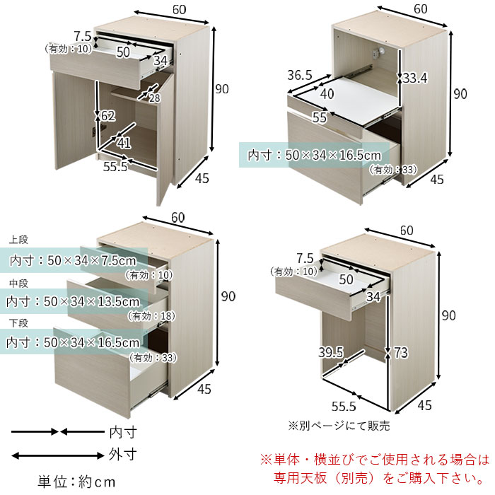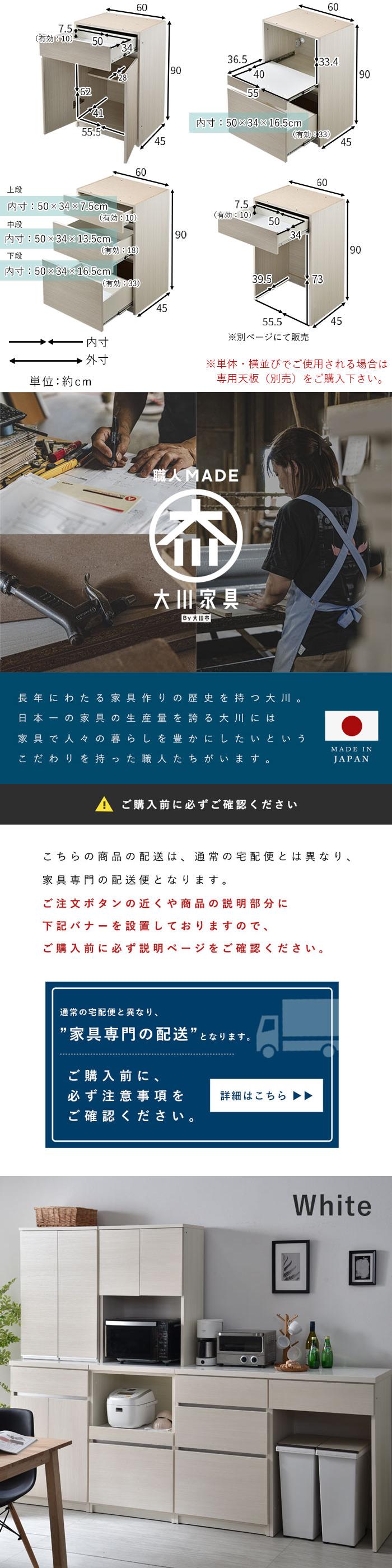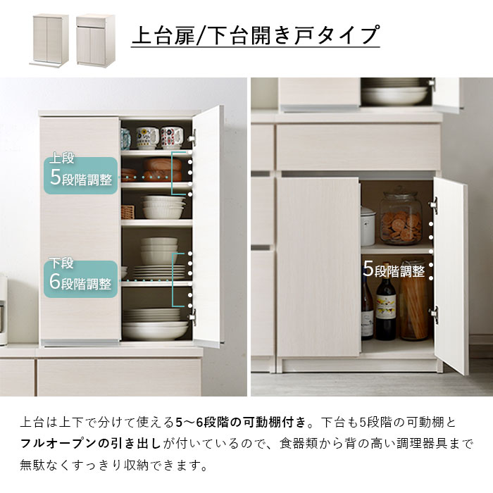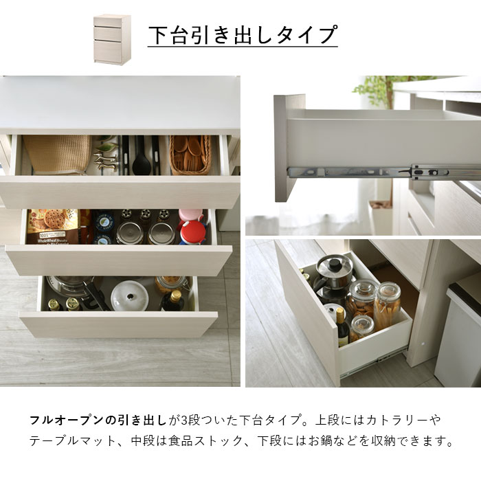 | 商品重量 | 上台扉タイプ:(約)19kg 上台オープンタイプ:(約)15kg 下台引出しタイプ:(約)26kg 下台オープンタイプ:(約)21kg 下台開き戸タイプ:(約)20kg |