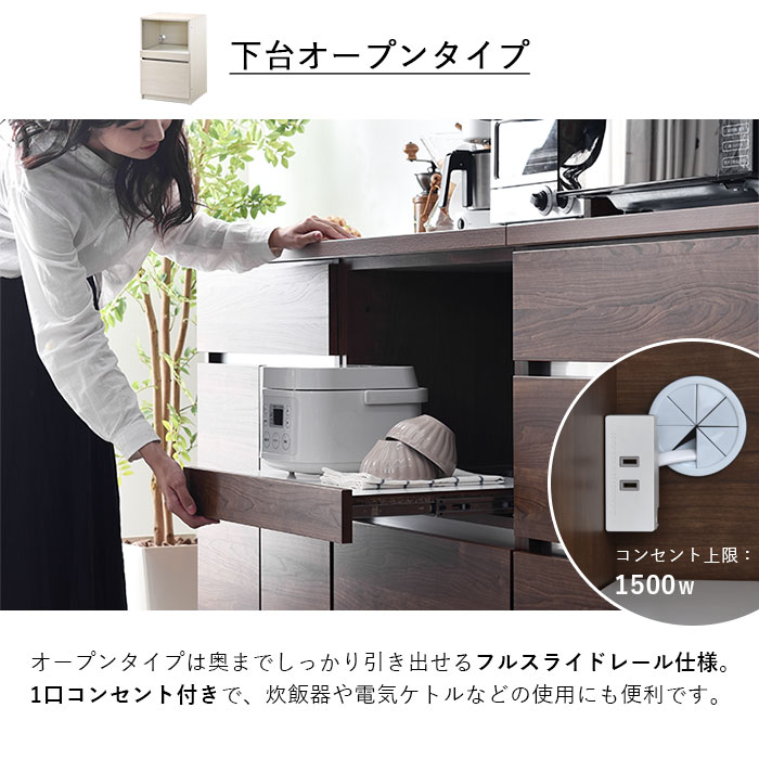 カップボード キッチン収納 レンジ台 下台 組み合わせ収納 ユニットキッチン ゴミ箱収納 キッチンボード キッチンキャビネット レンジラック レンジボード スライド棚 コンセント付き 引き出し付き 扉付き収納 フルスライドレール 可動棚 炊飯器収納 電子レンジ収納トースター収納 大容量 ユニット 大川家具