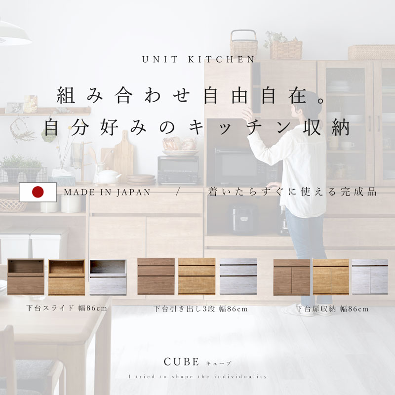 国産 ユニット キッチン収納 キューブ 下台 幅86cmタイプ
