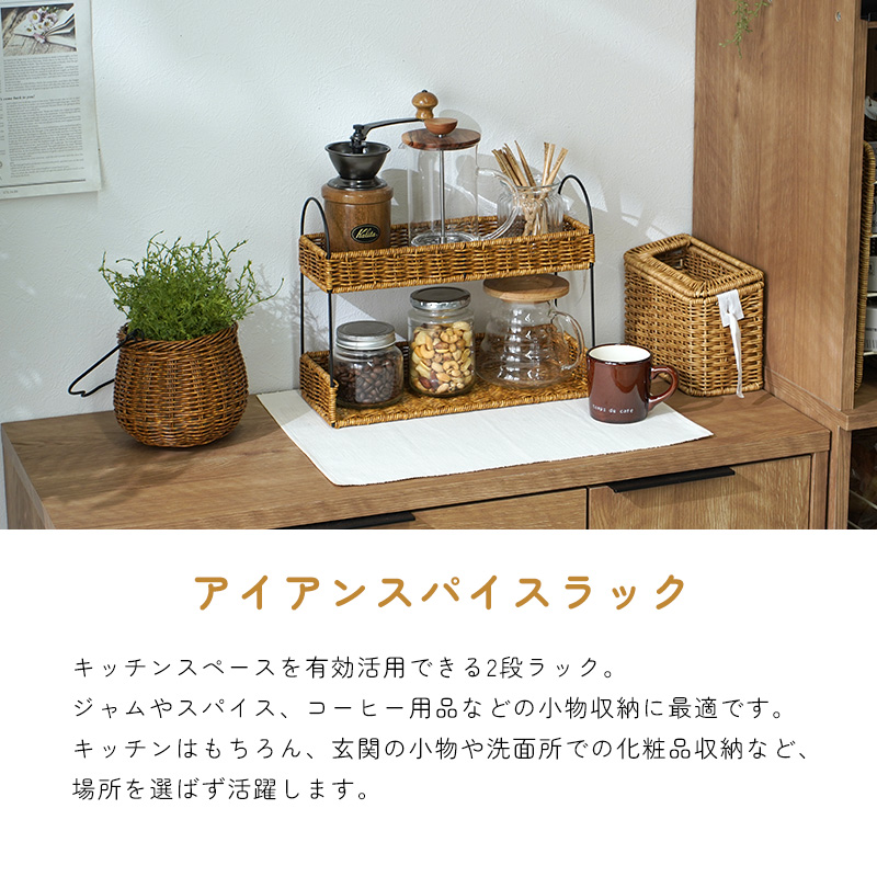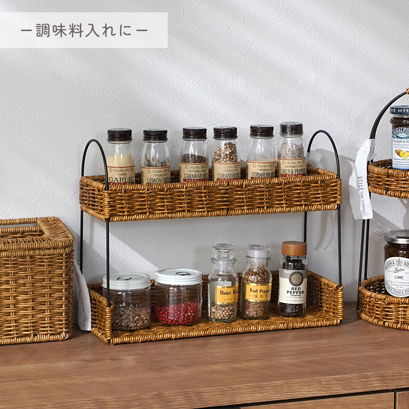 スパイスラック おしゃれ 洗える 手編み 卓上 持ち運び スリム キッチン 収納 収納かご かご編み スタンド 小物収納 ディスプレイ ナチュラル スパイス ラック マルチラック ハンドメイド オシャレ アフタヌーンティー 調味料 玄関 コスメ コーヒー アイアン アンティーク