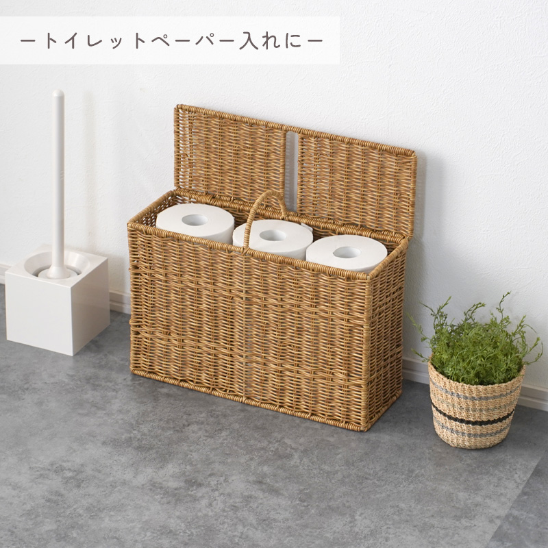 収納 トイレ収納 北欧 収納ラック 大容量 隙間収納 目隠し 収納カゴ トイレ 洗面所 トイレットペーパー ストッカー リビング 収納 ナチュラル タオル 掃除用品 バスケット 水洗いOK ラタン調 かわいい ユティル utile