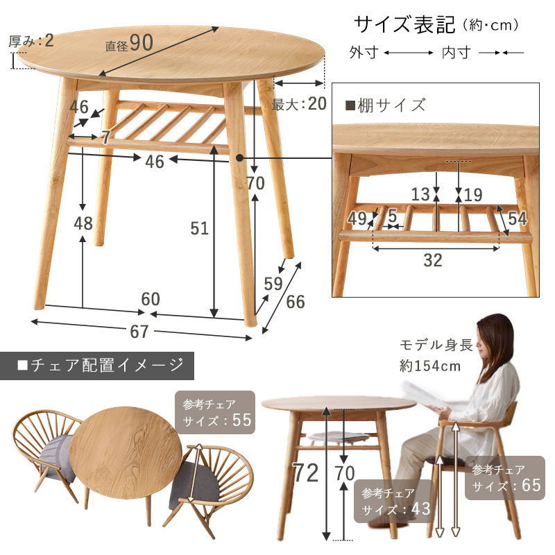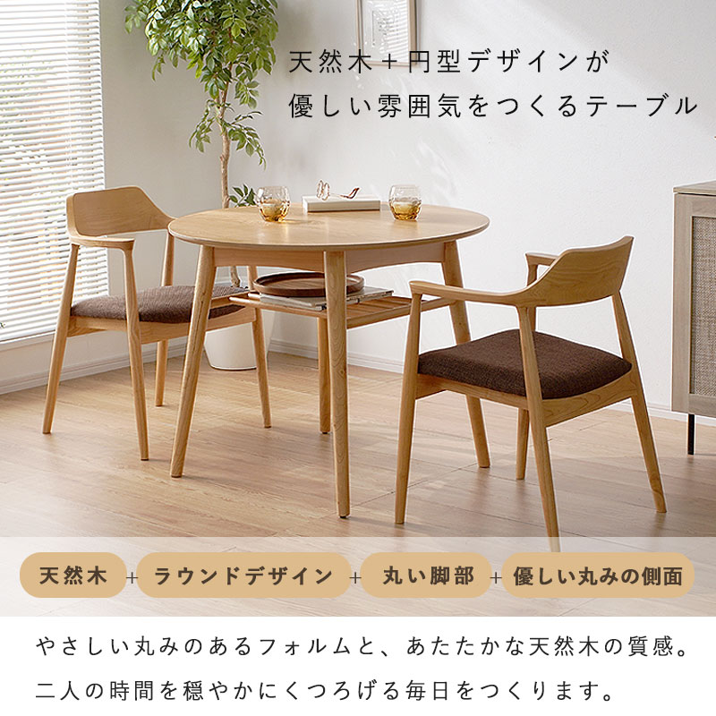 ダイニングテーブル 丸テーブル 単品 2人 丸 円形 円卓 円 丸型 テーブル 二人用 二人 高さ 70cm 幅 90cm 棚 収納 北欧 木製 天然木 コンパクト 木 ナチュラル おしゃれ 90センチ ダイニング 省スペース かわいい モダン 一人暮らし リビング ワンルーム 韓国風 インテリア