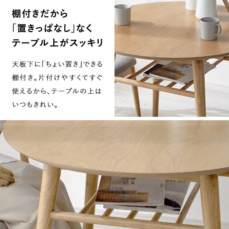 | 商品名 | 木製 収納棚付き 丸型 ダイニングテーブル シルクロ |